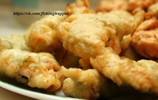 Готовим кляр. Отделяем белки от желтков. Взбиваем муку с желтками, вином и 100 гр. воды до однородной массы. Отдельно взбиваем белки в густую пену, смешиваем с кляром и