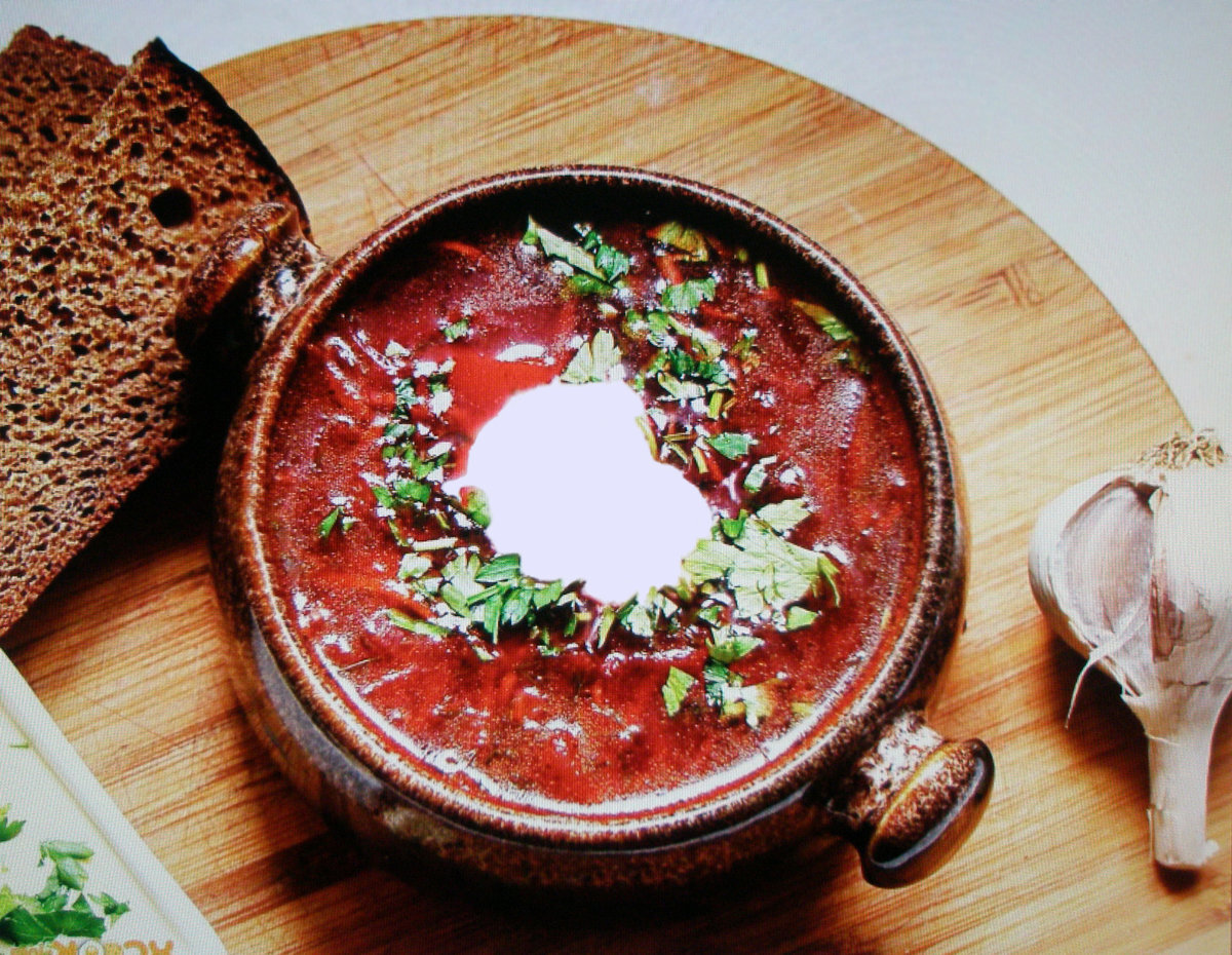 Россия является самой крупной по территории страной, состоящей из 85 регионов, каждый из которых обладает своей уникальной кухней. Но сегодня мы поговорим о блюдах, которые можно встретить в каждом уголке страны. 1)Борщ Борщ является одним из самых популярных супов в России, своё название он получил от слов «Бор» и «щ», что означает красный и присутствие капусты. Борщ чаще всего подаётся со сметаной, хлебом и кусочком сала. Существует множество способов приготовления, однако главными составляющими являются свекла, капуста, лук, морковь, говядина. Суп готовится от 3 до 5 часов, также существует теория, что борщ вкуснее настроенный, то есть должен постоять около суток после приготовления, так вкус бульона становится насыщеннее. 2)Холодец Холодец или, как по-другому его называют, студень представляет из себя желеобразное блюда с кусочками мяса. Появился он в северных регионах, грубо говоря из жирного супа. Холодец является очень сытным и жирным, и дает много сил. Подается он традиционно с