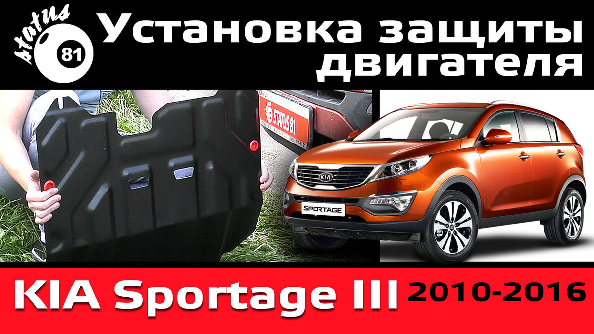 На видео показан подробный процесс установки защиты картера двигателя на автомобиле Киа Спортейдж 2012 (Kia Sportage III)