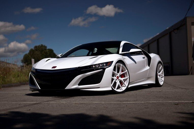 Honda NSX – новая школа с классическим прикосновением. Когда Honda NSX впервые появилась в 1990 году, она быстро превратилась в один из самых популярных спортивных автомобилей того времени. У неё был свой стиль, чёткое управления и невероятная динамика. Кроме того, она обладала непревзойденной надежностью. После долгого перерыва NSX возродился как инновационный суперкар. Он оснащен гибридной установкой с превосходным управлением и современным дизайном. NSX второго поколения — это полноприводное купе с гибридной установкой. В моторном отсеке установили бензиновый двигатель V6, с двумя турбинами. Помогают ему три электродвигателя. Два установлены на передней оси, третий стоит в коробке передач. Мощность японского купе составляет 581 л.с. Это позволяет разогнаться ей до сотни всего за 2,9 секунды с максимальной скоростью в 308 км/ч. SR Auto Group из Ванкувера приобрела белую Honda NSX. Они представили её новому владельцу с великолепными коваными дисками из алюминиев