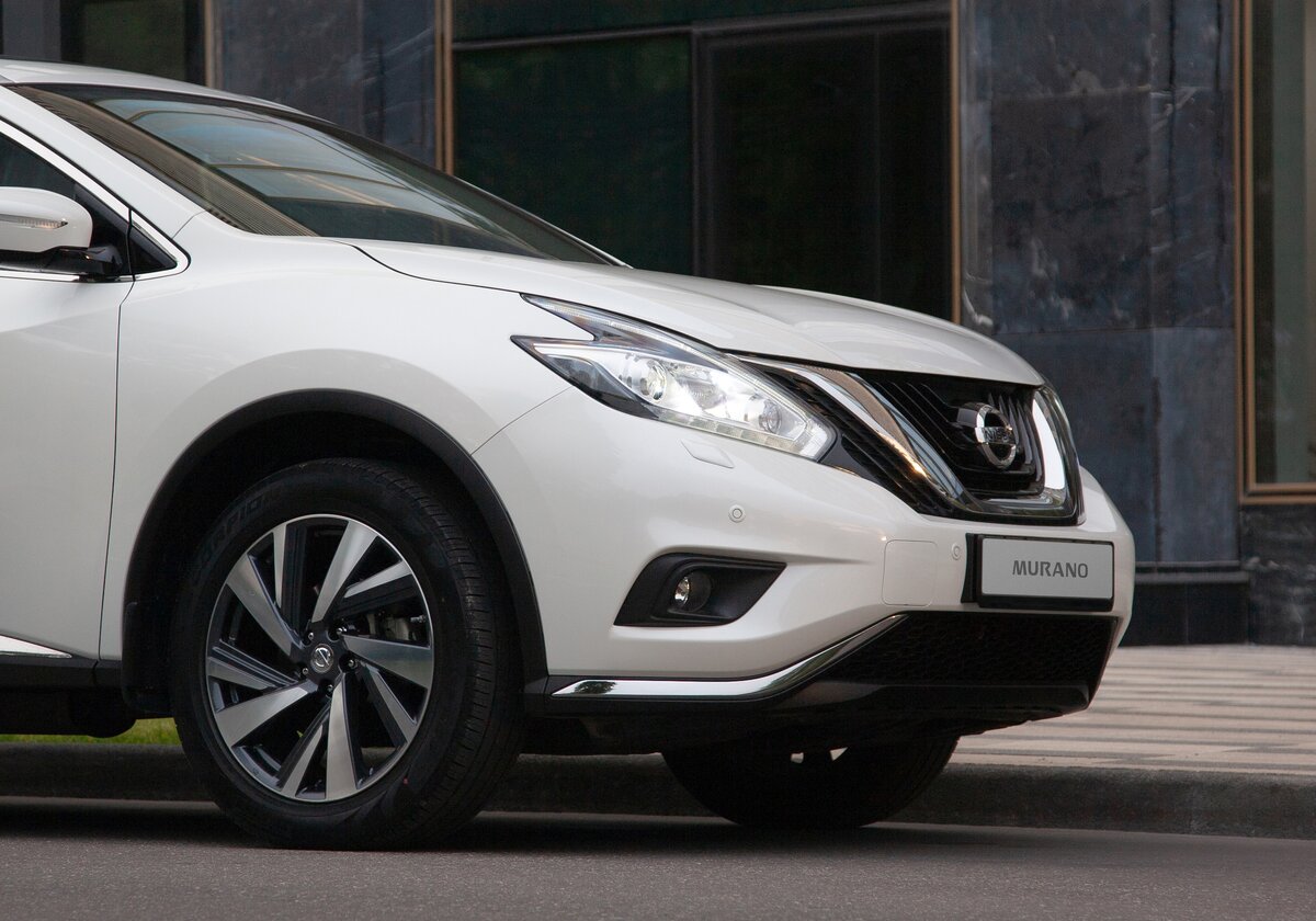 Дизайн Nissan Murano всегда в центре внимания. Спереди сверкает хром V-образной решетки радиатора. Сбоку — яркие, хищные светодиодные фары.