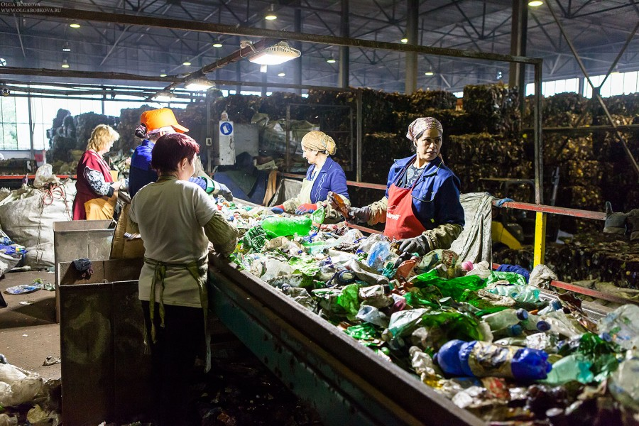 Сортировочная машина не всегда справляется с этой проблемой и приходится использовать ручной труд (увы, раздельный сбор мусора в нашей стране все еще не столь популярен, как хотелось бы). Фото ручной сортировки - заглавное фото этого поста. В этом цехе крайне грязно, что вполне логично.