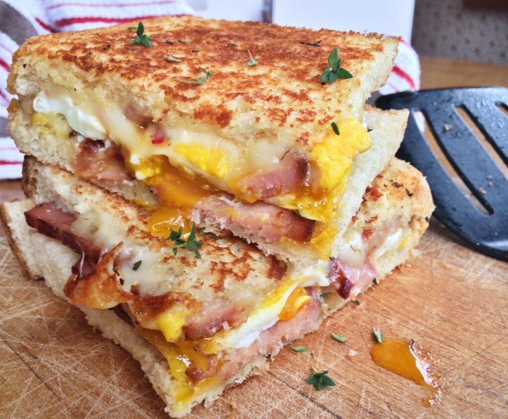 Лучший рецепт завтрака из 4-х ингредиентов сыра, яиц, ветчины и хлеба.
