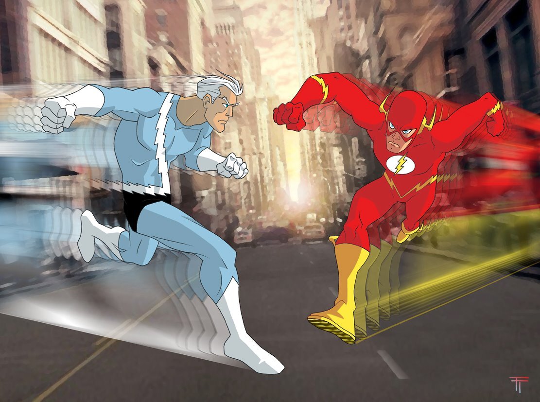 Добрый день дорогие читатели, давайте поговорим про двух спидстеров из двух разных вселенных комиксов. Гики по всему миру постоянно спорят кто же быстрее флэш или ртуть. Тема довольно замусоленная, но давайте все же с вами постараемся поставить точку в этом вопросе. И так начнем с флэша. Барри Ален является самым быстрым существом во вселенной DC. Обычно передвигается на сверхзвуковых скоростях, но при необходимости может двигаться на скорости, превышающей скорость света. В отличии от своего опонента флэш обладает такой фишкой как спидфорс. Спидфорс - особая энергия, которую создал же кстати сам Бари когда его ударила молния. Спидфорсом обладают все спидстеры DC, от него идёт вся сила скорости и все её фишки, такие как молния окружающая спидстера, перемещение во времени, защита от того что бы не сгореть во время бега, ну и т. д. Ну а что же у нас может ртуть. Ртуть так же как и флэш передвигается на сверхзвуковых скоростях, но только на них. Он не может развивать сверхсветовую скорос