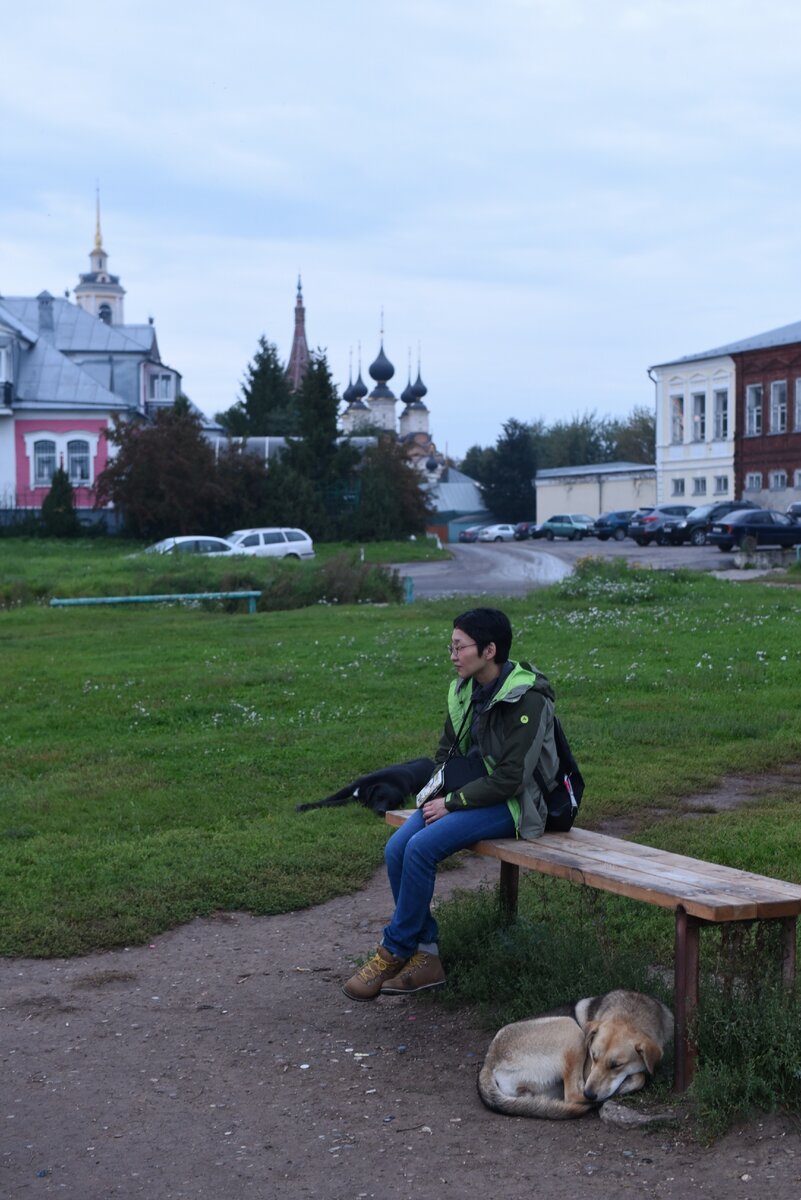 Одно из любимейших туристических мест - смотровая площадка у Торговых рядов. Сюда приходят местные и туристы, чтобы посидеть на лавочках. Покормить собак, кошек. Посмотреть на широкую пойменную низину. На петляющую речку Каменку. На отражения, что бесчисленными пятнышками катаются по поверхности воды. На катерок, который неспешно ходит туда-сюда, катая впечатлительных туристов. Фотографы, в бесконечном поиске фото-дзена. Ловцы закатов, художники, тонко чувствующие и впечатлительные натуры, романтики и мечтатели. Место настолько благодатное, что каждый находит то, зачем приехал, пришёл. Вот и мы, стоим на самом краю обрыва. Смотрим на панорамный вид. Даже затянутое густыми серыми тучами небо ничуть не смущает и не огорчает. Очень скоро наступают сумерки. Начинают зажигаться прибрежные огни. В многочисленных частных домиках окошки наполняются светом. Ресторанчики, как хвастливые павлины, распускают друг перед другом и восхищёнными туристами импровизированные хвосты из иллюминаций, зазыва