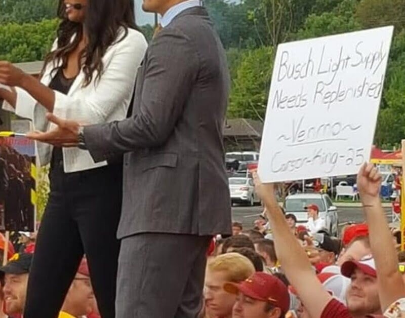 В США парень принёс на футбол плакат в стиле «скиньте денег на пиво, вот реквизиты», засветился с ним на ТВ и собрал 333.000$