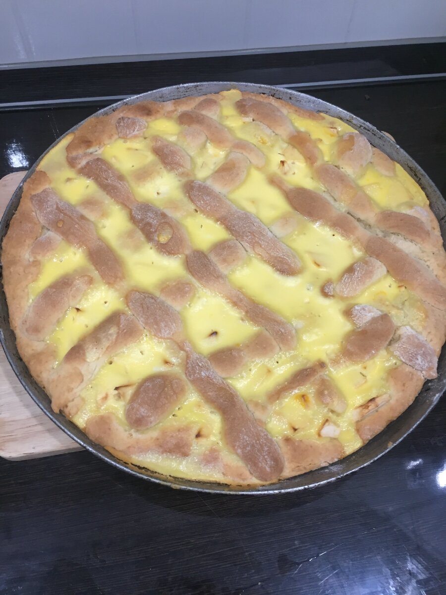 Наивкуснейший и наипростейший пирог (по моему мнению). Ингредиентов типа молока горной козы, слезы дракона и так далее, нет. Всё просто: Яблоки - примерно 1 кг. Сливочное масло - 200 гр.(беру пачку) Яйца - 2 шт. Ряженка (снежок, сметана) - 200 гр. Сахар - 1,5 стакана Сода Соль Мука - 3 ст. Сметана для заливки - 3 ст. ложки Сливочное масло растереть со стаканом сахара. Добавить яйцо, соль, соду. Хорошенько перемешать. Потом добавляем ряженку, перемешиваем. Затем добавляем по одному стакану муки и замешиваем не крутое тесто. Не добавляйте много муки. Высыпали три стакана, замесили. Выкрадывайте на стол, коврик, доску, как вам удобнее, посыпанный мукой, и помесите ещё слегка тесто. Оно все равно будет липнуть к рукам. Когда тесто готово, делите его на две неравные части. Большая часть - это основа пирога, меньшая на украшение. Смазываем сковороду (большую), или противень сливочным маслом (чуть-чуть. Пирог не пригорает и не прилипает) и большую часть теста раскладываем. Я весь б