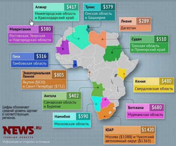 В своё время Владимир Владимирович неоднократно обещал догнать по ВВП на душу населения Португалию, но успешно «догнал» только Африку. Путиномика. Итоги... Сравнение зарплат в регионах России и Африки