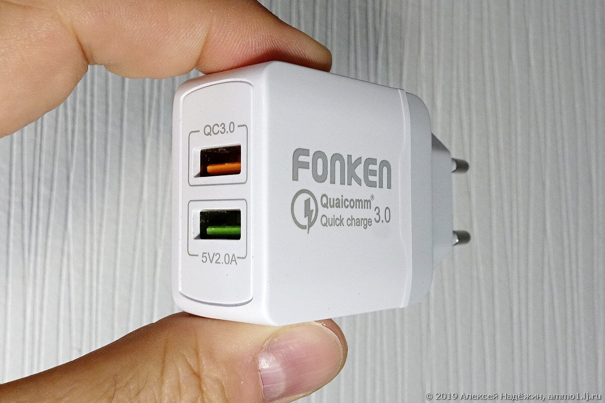 Я потратил некоторое количество времени на поиск недорогой, маленькой, лёгкой зарядки для смартфона и других гаджетов. Похоже, нашёл хороший вариант - Fonken Dual USB 28W QC3.0.