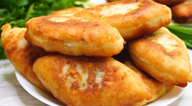 Накрыть тесто чистым полотенцем и оставить на 30 минут в теплом месте. Можно поставить миску в тазик с теплой водой. 4. Пока тесто подходит нужно приготовить начинку. Для этого почистить и измельчить 1-2 луковицы репчатого лука и обжарить на растительном масле до золотистого цвета. 5. Переложить к луку мясной фарш, потушить все вместе 5-10 минут. Если фарш суховат, то можно добавить 1 ч. л. муки и влить в сковороду немного