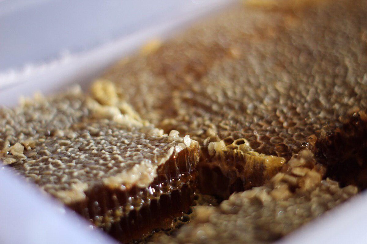 В нашей семье с недавних пор очень полюбился вкуснейший торт "Медовик". С тех пор, как получили возможность покупать настоящий мёд в сотах, решила попробовать приготовить медовик и не разочаровалась. Итак, для приготовления нам понадобится: Мёд - около 5 ст.л.; Мука - 500-600 граммов; Яйца - 2 штуки; Сахар - 200 граммов, 100 - в крем; Вода - 3 ст.л.; Щепотка соли; Сливочное масло - 70 граммов в тесто, 50 - в крем; Сода - 1 ч.л.; Сметана 20% - 500-600 мл. Для начала разогреваем мёд на среднем огне около 5 минут. Затем снимаем его с огня и добавляем соду, сахар и соль. Перемешиваем и ставим снова на огонь. Спустя минуты 2 добавляем воду и продолжаем перемешивать. Снимаем снова с огня и добавляем сливочное масло, тщательно перемешиваем. Немного остудив, добавляем яйца и муку, замешиваем тесто. Делим наше тесто на несколько равных частей и по очереди раскатываем очень тонко прямо на пергаментной бумаге. Раскатав, делаем дыры вилкой и условный след формой для торта, чтобы после выпекани