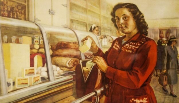 Какая бы экономика в стране не была, плановая как при социализме или рыночная ка при нашем диком капитализме, а кушать всем хочется. Поэтому дорога в магазин, где продают продукты, никогда бурьяном не зарастет. Поэтому интересно сравнить продмаг, который помнят еще некоторые граждане, и супермаркет, в который они ходят сейчас. Отмотаем лет этак 50 и зайдем в какой-нибудь продуктовый магазин. Нам надо купить мяса, картошки, свеклы, моркови и капусты для украинского борща, сливочного масла, сметаны, ну и хлеба, черного и белого. Скажем сразу, что все перечисленное мною в столичных магазинах было. За мясом и колбасой из соседних областей ездили на электричках. Не зря их называли «колбасными». Снаряжали соседи по квартире кого-нибудь и ехал он в Москву с пустым рюкзаком, а возвращался с полным. Вот сразу и проявляется главное отличие магазина советских времен от современного супермаркета – это ассортимент продуктов. Зайдите сейчас, к примеру, в любой. Чего только там нет из съестного и все