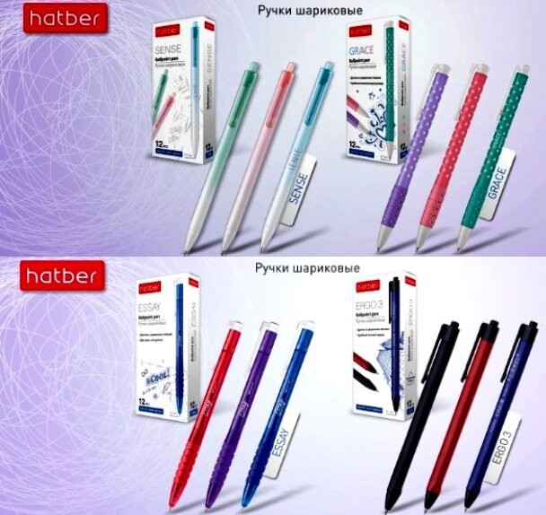 В ассортименте Канцбюро очередное поступление новинок. На этот раз обновление коснулось марок Hatber и Erich Krause в группе пишущих принадлежностей. Среди новинок вы найдете ручки гелевые и шариковые, автоматические и простые, в классическом и оригинальном исполнении, одним словом - раздолье! В Канцбюро каждый найдет свою идеальную ручку. По типу чернил все новинки ручек Hatber можно разделить на три группы: ручки шариковые с чернилами на масляной основе, с масляными чернилами пониженной вязкости и гелевые ручки. В автоматических ручках Hatber серий Sense, Grace, Essay и Ergo используются «мягкие» чернила на масляной основе, обеспечивающие стабильное письмо. Низкий расход чернил гарантирует длительное использование. Это означает, что такие ручки будут высоко оценены школьниками и студентами, а также людьми, которые много и часто пишут. Модели Sense и Grace представлены в современном, отражающем модные тенденции дизайне. Идеей для оформления этих новинок послужили принты, находящиеся н