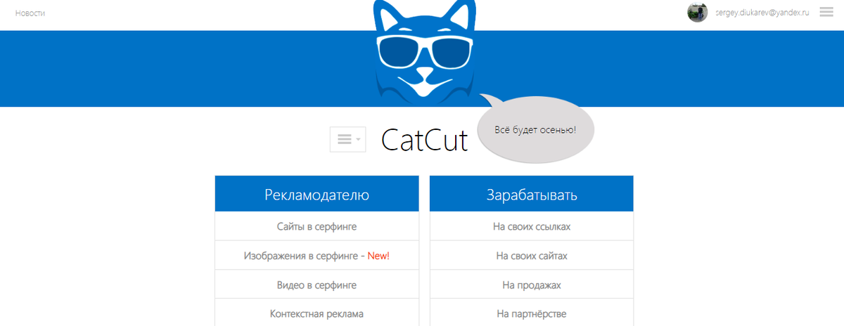 Сейчас каждый кто ищет заработок в интернете, обязательно найдёт какую то информацию про заработок на своих ссылках. И сегодня я расскажу об этом сервисе как на нём заработать, и получать реальные деньги. Зарегистрироваться на CatCut КэтКат представляет собой универсальную площадку для разной категории заработка. Здесь предлагают доход. 1. Со своих ссылок; 2. С продаж; 3. С партнёрских программ; 4. С рефералов; 5. Со своего сайта. Каждый вид заработка, реальный и не требует каких нибудь навыков или каких нибудь особых знаний. Дизайн системы понятный, даже для человека который не обладает хорошими знаниями интернета. Нет не чего лишнего на этом сайте что отвлекало бы. Техническая поддержка на сайте отзывчива. Всегда отзывается на интересующие вас вопросы. Регистрация на сервисе Зарегистрироваться на CatCut Регистрация на площадке совершенно бесплатная и понятная. Для регистрации понадобится