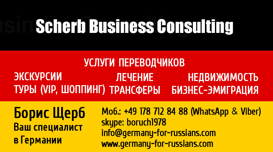Scherb Business Consulting – услуги по всей Германии: экскурсии, трансферы, переводы, лечение, недвижимость, бизнес-эмиграция