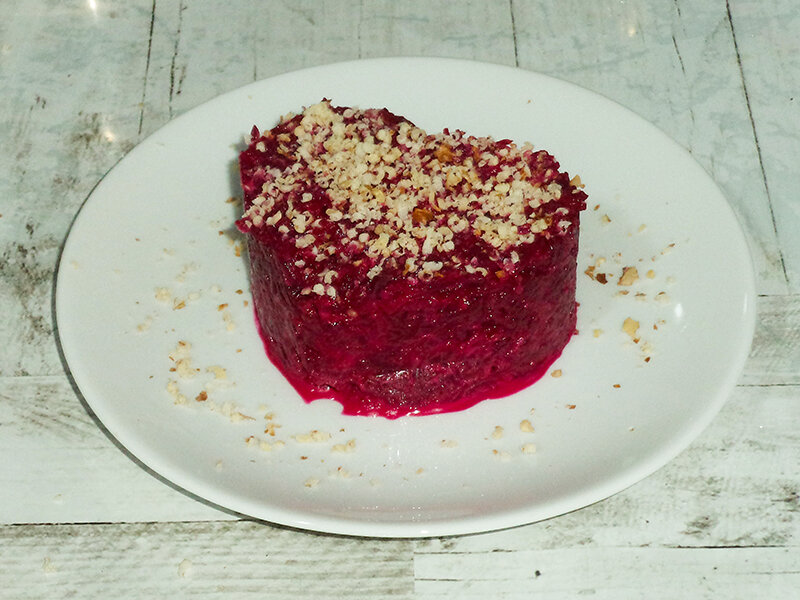 Салат из свеклы многими любим с детства. Он требует минимальных вложений, но при этом очень вкусен и полезен. А если добавить в этот свекольный салат грецкие орехи, то он идеально впишется в осеннее меню. Заряд витаминов для иммунитета точно обеспечен! Время приготовления – 60 минут Количество порций – 2 Что потребуется для свекольного салата: Как приготовить салат из свеклы и грецких орехов 1. Отвариваем или запекаем свеклу. Учтите, что запеченная свекла получается менее водянистой, с более насыщенным вкусом. Кроме того, запекается свекла очень быстро. Если не знаете, как запечь свеклу в фольге, то воспользуйтесь моим идеальным рецептом для духовки. 2. Готовую свеклу измельчаем на терке. 3. Также измельчаем и чеснок. Количество чеснока подбираем на свой вкус. Если любите поострее, то смело добавляйте еще. 4. Аналогично на терке измельчаем ядра грецких орехов. 5. Добавляем майонез и перемешиваем. Пробуем и по вкусу добавляем соль. 6. При подаче салат посыпаем дополнительной порцией те