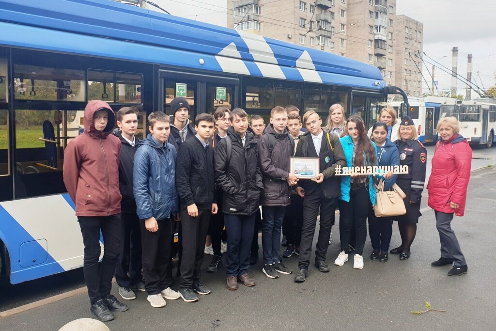 Выездной урок по безопасности дорожного движения провёл Горэлектротранс для старшеклассников Школы №385 Красносельского района. «Добрый троллейбус» проследовал от улицы Пионерстроя до Балтийского бульвара, где сейчас проходит новая трасса троллейбусного маршрута №32 (за месяц работы в новом режиме он перевез 400 тыс. пассажиров). Ребятам напомнили об основных правилах безопасного поведения как на улице, так и в общественном транспорте. Традиционно в проекте «Добрый транспорт» речь идёт о «базовых» Правилах дорожного движения. Но для учеников 9 класса – программа расширенная. Старший инспектор по пропаганде отдела ГИБДД РФ по Красносельскому району Юлия Гончарова рассказала о резонансных случаях ДТП с участием детей. Пояснила, какие именно ошибки были допущены со стороны всех участников дорожного движения, напомнила о правилах движения, в том числе и на велосипедах. Помощник директора по безопасности движения Троллейбусного парка №1 Елена Боровикова напомнила детям о культуре поведени