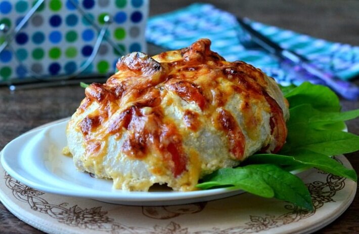 Готовим полезный обед или ужин из куриной грудки. Получается сочно, нежно и очень вкусно. Ингредиенты: 2 куриные грудки 3 помидора 100 гр. тертого сыра соль перец молотый кетчуп сметана или натуральный йогурт 3 ст. л. сока лимона базилик Приготовление: 1. Куриные грудки вымыть и обсушить.