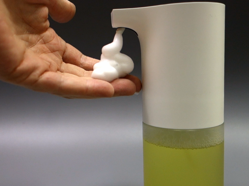 Привет, друзья-шопоголики-мойдодыры! Вот уже прошло 9 месяцев, как в моей семье появилось это замечательное устройство — автоматический дозатор мыла Xiaomi Mijia. Опыт использования и впечатления есть, значить есть что Вам рассказать об этой штуковине. Это уже вторая модель дозатора от Mijia и я остановился именно на ней по трём причинам. Сборка и качество материалов вообще без нареканий. Матовый пластик не бликует и от этого продукт выглядит дорого-богато. После покупки дозатора, домашние приняли его не сразу. Но когда меня на работе попросили принести и показать это чудо-устройство, я положил его в рюкзак и буквально минут через 10 слышу из ванной комнаты: — "А где эта штуковина?". Как работает дозатор? Мы подносим руку к носику, срабатывает инфракрасный сенсор, и выдает нам не жидкость, а воздушную пенку, которую он генерирует. Просто, быстро, без осечек. Как включается? Логотип компании Mijia, который размещен на верхней части дозатора, по совместительству является сенсорной кн