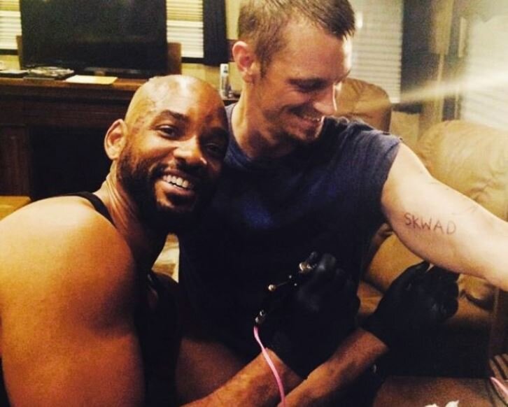 Если когда-то давным давно татуировки должны были заговаривать духов, отгонять беду или рассказывать соплеменникам о твоем социальном статусе, то теперь — это летопись души. Краткий дневник, состоящий из таких событий, которые никогда не должны быть стерты из памяти. Татуировки не выходят из моды уже много лет и их популярность не уменьшается. Большинство людей украшает свое тело рисунками, которые несут для них определенный смысл. Среди знаменитостей есть немало обладателей татуировок, например, некоторые актеры набили себе тату в честь памятной для себя роли. 1. Актеры «Отряда самоубийц» Во время работы над популярным сериалом актеры и работники съемочной группы сдружились, и решили сделать на память татуировки – слово skwad «отряд». Интересно и то, что Уилл Смит и Марго Робби набивали тату коллегам. 2. Актеры «Властелина колец» Когда проходили съемки трилогии «Властелин колец», почти все актеры, исполняющие роли членов Братства Кольца, сделали себе одинаковые татуировки,