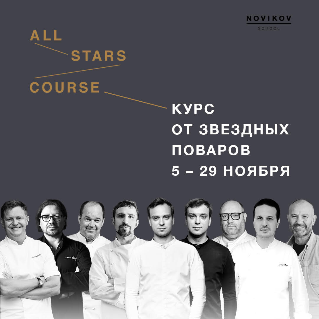 В ноябре кулинарная школа Novikov School уже во второй раз запускает образовательный гастрономический курс All Stars с участием известных шеф-поваров. Это уникальная возможность перенять секреты сразу 9 успешных и титулованных шефов в форме практических занятий в течение месяца.