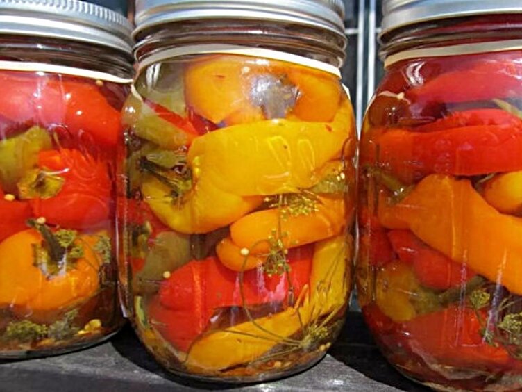 Для любителей кавказских блюд! Вкуснота...Перцы при приготовлении теряют свою основную остроту, то есть съедобны и для тех, кто не сильно жалует слово "ПООСТРЕЕ". Но вкус, за счёт маринада, просто необыкновенный. Приятная и красивая закуска на праздничный стол к мясу или блюдам из птицы. Сразу скажу, перец уваривается, становиться мягким и из большого пакета перца на выходе мы получим не более 4 баночек 0,7. А теперь к рецепту! У меня большой пакет перца, это пару килограмм. Моем перец, прокалываем его насквозь в середине. Чеснок ( 3 большие головки) чистим и режем тонкими пластинками, к нему добавляем измельчённые зелень кинзы, базилика, петрушки( ту зелень, которую вы любите, но я рекомендую кинзу и петрушку класть обязательно, они то этот необычный вкус и придают) В кастрюлю наливаем 300 мл. растительного масла и 200 воды. Добавляем 1 столовую ложку соли( без горки), 1 столовую ложку сахара, 5 горошин душистого перца, 2 веточки гвоздики.Как закипит, добавим 100 мл 9% уксуса. А тепер