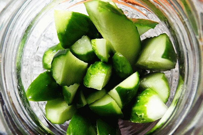 Существует большое количество рецептов, чтобы сделать солёные огурцы на зиму в банках, мы же хотим поделиться с вами рецептом, как замариновать огурцы чтобы были хрустящими с перчиком чили и лимоном. Огурчики получаются оригинального вкуса и очень хрустящими, идеальная закуска к мясу. Кроме того, это отличный вариант, что делать с битыми огурцами, поскольку в рецепте они разрезаются на 4 части. Рецепт маринованных хрустящих огурцов Для приготовления хрустящих огурцов нам понадобятся следующие ингредиенты: Для начала необходимо промыть огурцы под проточной водой, можно и не под проточной, если вы на даче. Берем огурец и режем его пополам вдоль его длины. Далее нам понадобиться обычная чайная ложна, берем ложку и выскребаем из огурца его самую водянистую часть (семечки и сердцевину), для данного рецепта хрустящих огурцов они не нужны, так как огурцы должны хрустеть. Данную процедуру нужно проделать со всеми четырьмя половинками огурцов. Затем берем лимон, чтобы сок максимально легко