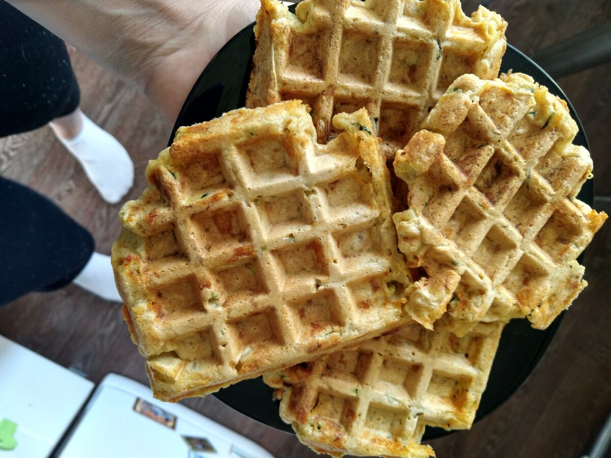Вафли, которые можно всегда Не знаете куда деть кабачки? Я предлагаю испечь вафли, которые можно всегда, и даже на ночь, ведь они низкокалорийные. Если у Вас нет вафельницы - не расстраивайтесь, а сделайте оладьи. Только жарить их нужно на медленном огне, без масла и закрыть крышкой. Жарим по 6 мин с каждой стороны на а/п сковороде. Ну а счастливчики, у кого есть вафельница, просто заливают тесто в форму, и так же, жарят 6 мин. Не буду писать граммовку, не заморачиваюсь на эту тему. Главное, тесто должно быть густой консистенции, еле стекать с ложки. И не обязательно делать с этой муки, замените на любимую Итак, состав: Кабачки Мука пшеничная цельнозерновая Сыр твердый Разрыхлитель Яйцо Соль Кабачки и сыр трем на крупной тёрке. Жидкость не отжимать. Добавляем муку, яйца, сыр, разрыхлитель, солим по вкусу. Перемешать все тщательно и можно выпекать. Отлично подойдёт для перекуса