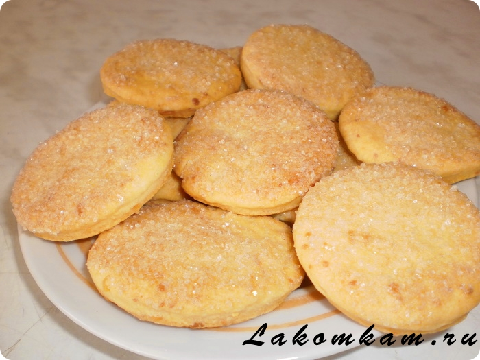 Ингредиенты: плавленные сырки — 2 штуки (по 100 грамм); маргарин — 250 грамм; мука пшеничная — 1,5 стакана; сахар — для посыпки.