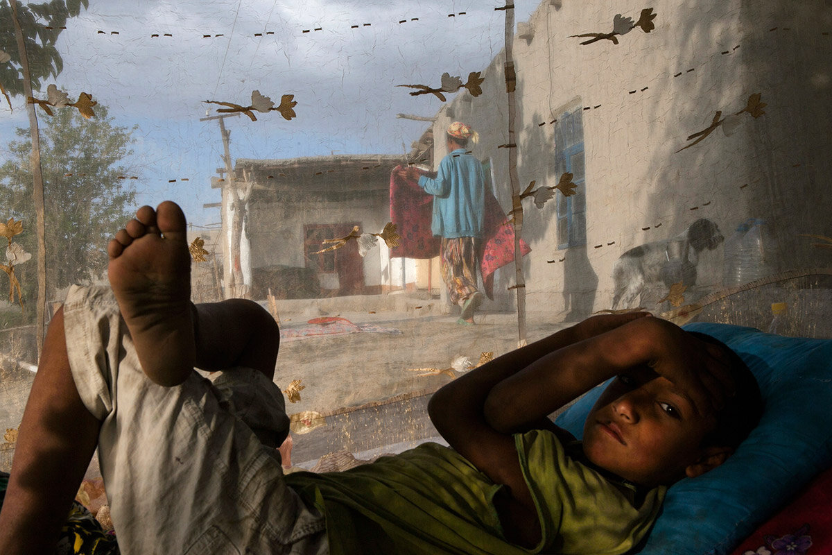 Если сравнить мой первый опыт съемки в цыганском селе и кадры из последних визитов туда — это земля и небо. В первый раз я фотографировал на околице, внутрь кишлака заходить было жутко неудобно и боязно. Вообще, взять и прийти на чужую территорию с фотокамерой, тем более в чужое жилище, мне казалось чем-то аморальным. Люди живут своей жизнью, воспитывают детей, стирают, готовят еду. А тут вторгается незнакомый человек и начинает фотографировать. Конечно, прежде чем я преодолел эти внутренние преграды, должно было пройти какое-то время, в моем случае это растянулось почти на год. Сначала я робко просил разрешения снять во дворе тандыр (глиняную печь для лепешек). Потом так же осторожно снимал что-то вокруг себя — окна, детей, дворик. На первых снимках моей «цыганской серии» почти сплошь позирующие дети.