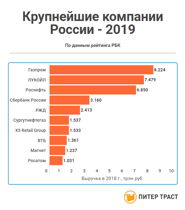 РБК представил традиционный ежегодный рейтинг 500 крупнейших российских компаний. Основным критерием отбора стала выручка за 2018 год. Издание сообщает, что совокупная выручка участников рейтинга выросла на 18,2% и составила 85,5 трлн руб. - это 82,3% от размера ВВП России в 2018 году. При этом большая часть компаний - 434 - продемонстировала рост выручки, снижение - только 66. Отраслевой рейтинг вновь ожидаемо возглавил нефтегазовый сектор, обеспечивший 36,9% выручки компаниям, вошедшим в рейтинг. Второе место занял сектор «Металлы и горная добыча» (10,8%), третье - финансовый сектор (10,2%). Более подробный аналитический разбор рейтинга крупнейших компаний можно найти на сайте РБК, а ознакомиться с топ-10 - в нашей инфографике.