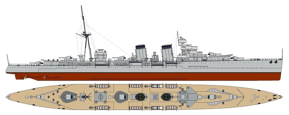 А вот "Серверу" назначили крейсером ПВО- четыре 105-мм орудия, восемь 37-мм и четыре 20-мм автомата с соответствующим ростом водоизмещения до 8000 ст. и 9660 т. полного.