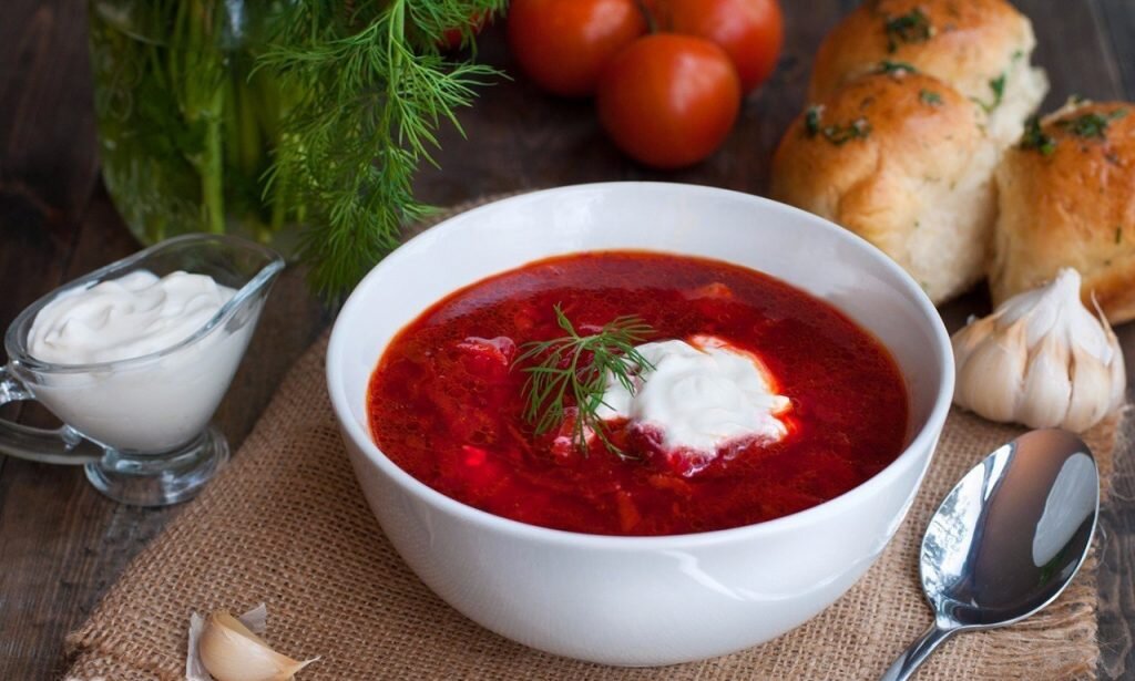 Традиционное блюдо восточных славян можно приготовить с тушенкой. Славянской кухни невозможно представить без борща. Вкусный наваристый и ароматный суп, где собираются все любимые в семье овощи и зелень. Особенно мои родственники любят борщ на мясном бульоне, но когда нет в доме ароматной косточки, можно приготовить используя тушенку. Впрочем, этот вариант прекрасно подойдет для дачи. К борщу можно подать сметану, приготовить пампушки, будет вкусно. Ингредиенты на 10 порций: Тушёнка - 335 г Картошка - 5 шт Свекла - 1 шт Столовый уксус - 2 ст. ложки Капуста белокочанная - 250 г Морковь - 1 шт Помидоры - 1 шт Лук репчатый - 1 шт Болгарский перец - 0,5 шт Перец чёрный молотый - по вкусу Вода - 2 л Растительное масло - 20 мл Соль - по вкусу Зелень - по вкусу Пошаговое приготовление: 1. Ингредиенты 2. Свеклу очистить, пропустить через крупную терку. В толстостенную кастрюльку налить немного воды, около 1/4 стакана. В кипящую воду положить свеклу, добавить уксус, чтобы свекла не потеряла ц