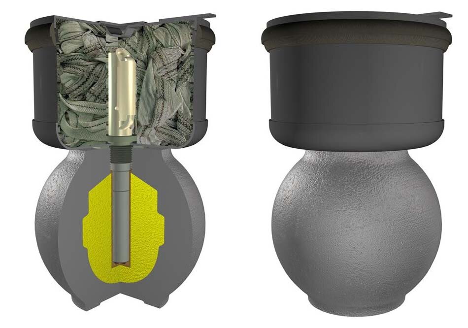 Для защиты самолетов-штурмовиков в воздухе от нападения истребителей противника со стороны нижней части задней полусферы в ГСКБ-47 под руководством А.Ф.Турахина разработали довольно необычный боеприпас √ авиационную гранату АГ-2. Она представляла собой сферический металлический корпус, отлитый из сталистого чугуна и снаряженный 80 граммами смеси К-2, оснащенный тормозным парашютом и взрывным устройством. В транспортном положении парашют был уложен в специальной цилиндрической коробке, жестко закрепленной на соединительной втулке взрывателя (трубке ударного механизма). Легкая жестяная крышка парашютной коробки, скрепленная с кольцом полюсного отверстия купола парашюта, принудительно открывалась при сбрасывании боеприпаса, чем гарантировала раскрытие парашюта.