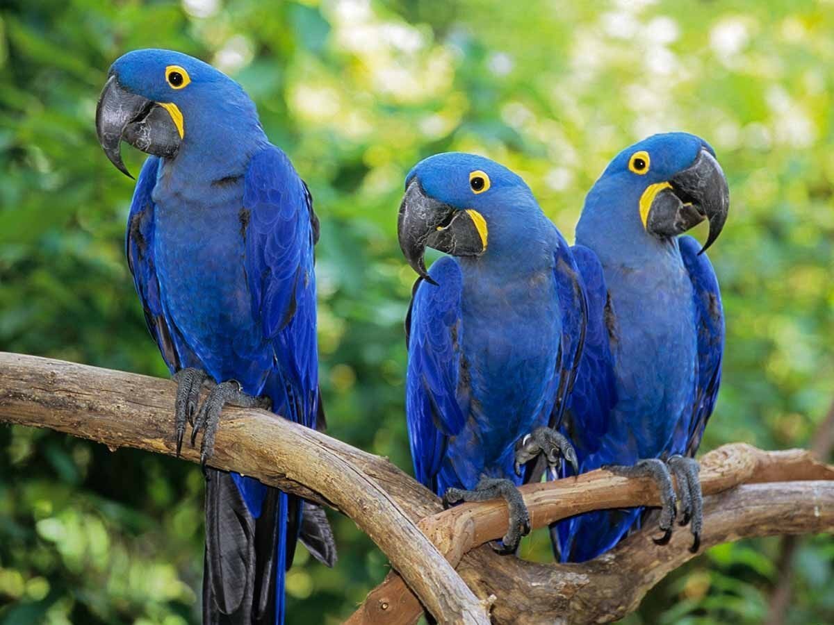 Попугай голубой ара Голубой ара встречается во многих известных мультиках, благодаря своему яркому окрасу и оперению. Голубые ары– экзотическая разновидность попугаев, которых в мире уже практически не осталось. Впервые попугай был описан немецким натуралистом в 1819 году, после чего началось активное истребление птицы. Их вылавливали для пополнения своих коллекций, а также вид стал исчезать из-за вырубки деревьев, где обитали ары. За последние года не было обнаружено ни одной особи, что указывает на полное вымирание вида. Давайте взглянем на фото голубого ары и полюбуемся на его шикарное оперение! Перья попугая ары полностью окрашены в голубой цвет, и лишь макушка имеет светлые оттенки серого. Крылья более яркие чем все туловище, контур глаз и область возле клюва очерчены золотисто-желтым цветом. Размер этих пернатых составляет около 55-65 см, а вес более 300 грамм. Клюв имеет изогнутую форму, при этом верхняя часть намного больше нижней, поэтому она выступает над ней. Клюв для птиц