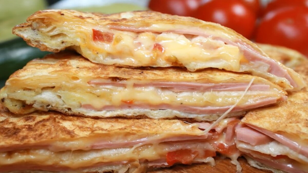 Всем привет, сегодня готовим завтрак которому будут рады все. Все очень просто, вкусно и доступно. Когда смотришь на картинку прям "слюнки текут". Готовим, что-то подобное пирога, запеканки или называйте это как хотите))) Для этого нам понадобится: Куриные яйца необходимо взбить, по вкусу добавляем соль и перец . Колбасу или ветчину нарезать круглешками, так же как и помидор. Далее смазываем сковороду сливочным маслом, как дно, так и края сковороды, далее выкладывать будем все слоями. 1 слой: выливаем в сковороду половину взбитых яиц, выкладываем лаваш, на него колбасу и посыпаем натёртым сыром. 2 слой: выкладываем лаваш, на него помидоры, посыпаем сыром. 3 слой: снова колбаса или ветчина, посыпаем сыром 4 слой, закрываем все лавашом, выливаем остатки взбитых яиц, распределяем равномерно по всей плоскости лаваша. Закрываем крышкой, обжариваем по 5-6 минут с каждой стороны, необходимо осторожно перевернуть, далее даём блюду немного остыть, нарезаем и можно подавать к столу. Вот такая в