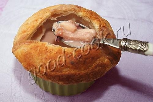 250г слоёного теста, 500г морепродуктов (морской коктейль)