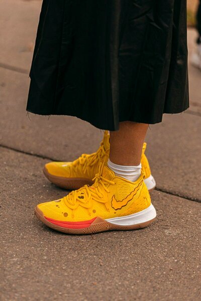 Если кроссовки это произведение искусства, то есть обязательно эксперты в области стиля. Они диктуют какие кроссовки можно считать шедевром, а какие полной безвкусицей. Даже если вы видите в кроссовках чёрный квадрат, они могут оказаться шедевром и наоборот. Мы не особо слушаем модников, потому что разделяем точку зрения, что каждый одевается для себя, а не для окружающих. Но иногда наши вкусы совпадают. Эта подборка кроссовок с парижской недели моды 19/20 как раз этому подтверждение. 1. Nike Kyrie 5 "Spongebob" Nike Kyrie 5 - пятые номерные баскетбольные кроссовки баскетболиста НБА Кайри Ирвинга (Kyrie Irving). Мужику всего 27 лет, а он уже может похвастаться своей именной коллекцией кроссовок. Летом этого года Nike выпустил серию расцветок Nike Kyrie 5 с героями из мультфильма "Губка Боб квадратные штанцы". Кроссовки Кайри в расцветках Спанч Боба, Мистера Крабса, Патрика, Сквидварда, белки Сэнди снесла всем бошку. Если честно я не ожидал. Да, круто. Но коллекция кроссовок в расцве