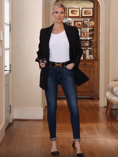 Хотите создать побольше разных осенних образов, но денег на наряды не хватает? Тогда спешите узнать, какие стилистические решения вам доступны, если у вас есть одна пара джинсов. Что вам понадобится Чтобы достичь цели, возьмите модель темного цвета с высокой талией: она порадует вас универсальностью. Также выберите подходящую белую футболку и стильный пояс из кожи — экономить на аксессуарах не стоит. Образ № 1: джинсы и пиджак Дополните базовые джинсы и белую футболку черным пиджаком и туфлями на высоком каблуке. Женственности в образ внесет тонкая цепочка на шее, к которой вы добавите незатейливый кулон: подобная сдержанность подчеркнет ваш хороший вкус. В заключение выберите очки от солнца, ведь они понадобятся даже в осенние дни. Вы можете добавить разнообразия своему наряду: при желании вы застегнете пиджак и перехватите его ремнем. Образ № 2: джинсы и кардиган Если вы хотите выглядеть стройнее, выбирайте длинный кардиган и носите его расстегнутым. В силуэте будет больше вертикаль