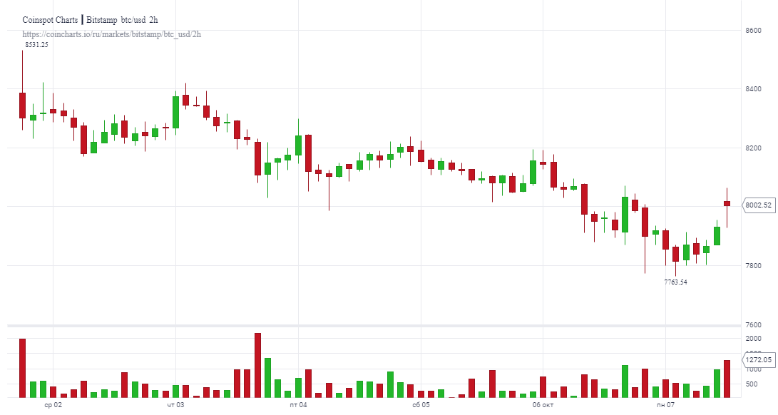 Крупнейшая цифровая валюта в понедельник, 7 октября, теряет позиции, биткоин уже опустился до $7918. Инвесторы перевели часть своего капитала в альткоины, некоторые из которых в начале недели ощутимо прибавили в стоимости. например, токен XRP подорожал более чем на 5% до $0,267. Bitcoin Cash и EOS подорожали на 2,5% и 1,05% до $227,2 и $3 соответственно. Капитализация альткоинов выросло до $71,93 млрд, а стоимость всех биткоинов опустилась до $142,42 млрд. Еще в конце прошлой недели началось понижение индекса доминирования BTC. В минувшие выходные этот показатель опустился ниже 67%. Сейчас доминирование составляет 66,6%. Пользователь Твиттера под ником Crypto Welson в минувшую пятницу разместил пост, в котором отметил, что доминирование биткоина будет сокращается. По мнению этого эксперта, резкое укрепление позиций альткоинов, например эфира или XRP, мы увидим в будущем году. Сегодня доля биткоин-транзакций стала сокращаться более активно. Если в первой половине дн