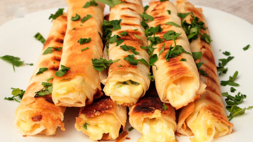 Приготовим начинку. Для этого в миску кладем сыр «фета» и разминаем вилкой. Вместо феты можно взять творог. К нему добавляем твердый тертый сыр и рубленный укроп, все хорошенько перемешиваем и начинка готова! Лаваш нарезаем на небольшие прямоугольники. Смазываем начинкой, примерно 1 ст.л. будет достаточно. Сворачиваем в трубочку и немного прижимаем. В отдельную емкость разбиваем яйца, немного солим и взбиваем вилкой. Каждую «палочку» окунаем в яичную смесь и обжариваем на среднем огне с двух сторон до румяной корочки. Как видите все быстро, просто, очень сытно и вкусно!