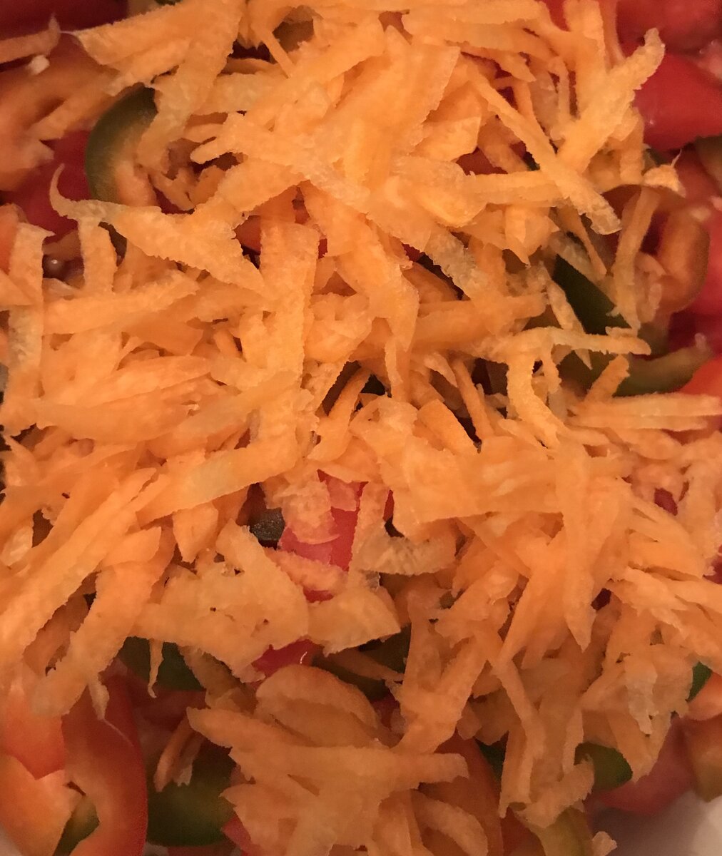 Сегодня приготовим салат на зиму. Получается сочный, ароматный и слегка хрустящий. Эта заготовка очень выручает, когда надо придумать закуску на скорую руку. Просто открыл баночку и готово) На 4 баночки 0,5 л. нам понадобится: Для начала подготовим овощи. Промоем и почистим. Капусту нарезаем тонкой соломкой. Морковь натираем на крупной терке. Сладкий перец нарезаем соломкой. Лук - полукольцами. Помидоры - дольками. Соединяем овощи в емкости и перемешиваем. Теперь добавляем соль, сахар, уксус и растительное масло. Ещё раз перемешиваем. Раскладываем салат по стерилизованным банкам. Банки стерилизуем в кастрюле. Воду наливаем по плечики и стерилизуем 20 минут с момента закипания. Далее банки закупориваем, переворачиваем и укутываем до полного остывания. Вкуснейший салат на зиму готов) Приятного аппетита)