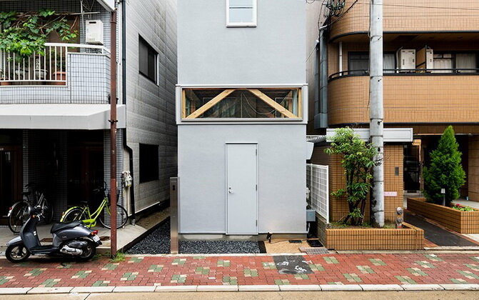 Надо свой дом и офис в крупном городе для развития бизнеса – так приходится как-то размещаться на любом клочке земли. Японские архитекторы в Осаке смогли построить здание на узком участке шириной 4,2 м, которое стало для владельца и жильем, и офисом для сотрудников фирмы. Японский стиль Наверное, почти все хотят просторный уютный дом или квартиру для жизни и современный комфортный офис для работы. Но что делать, если в стране дефицит земли, а жить и работать приходится в крупном японском городе Осака. Надо как-то выкручиваться и стараться занимать последние пустующие маленькие и неудобные участки, пытаясь уложится в ограниченный бюджет. Место действия – район с плотной городской застройкой в Осаке, маленький переулок, а точнее тупик, зажатый с трех сторон пятиэтажными жилыми домами. Ширина участка всего 4,2 м, длина, а в данном случае глубина, около 18 м и общая площадь 75,6 кв. м. Из-за необходимости оставить свободными хоть небольшие проходы по сторонам нового дома, площадь застрой