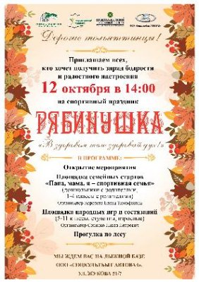 14 ОКТЯБРЯ В 14.00 ПРИГЛАШАЕМ ВСЕХ ТОЛЬЯТТИНЦЕВ И ГОСТЕЙ ГОРОДА НА СПОРТИВНЫЙ ПРАЗДНИК "РЯБИНУШКА"