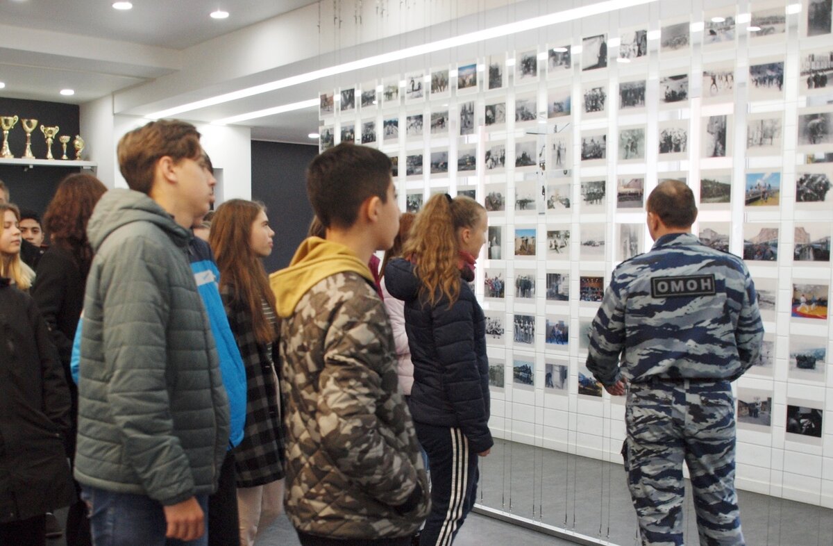 Подростки с большим интересом рассматривали форменное обмундирование сотрудников советской милиции и современного ОМОН Росгвардии; активно задавали вопросы об условиях и задачах службы в отряде, о том, каким уровнем подготовки необходимо обладать, чтобы служить в подразделении. Далее учащимся были продемонстрированы образцы стрелкового вооружения ОМОН. В том числе автоматическое оружие знаменитого отечественного конструктора Михаила Тимофеевича Калашникова, 100-летие со дня рождения которого отмечается в этом году. Также для школьников была пр