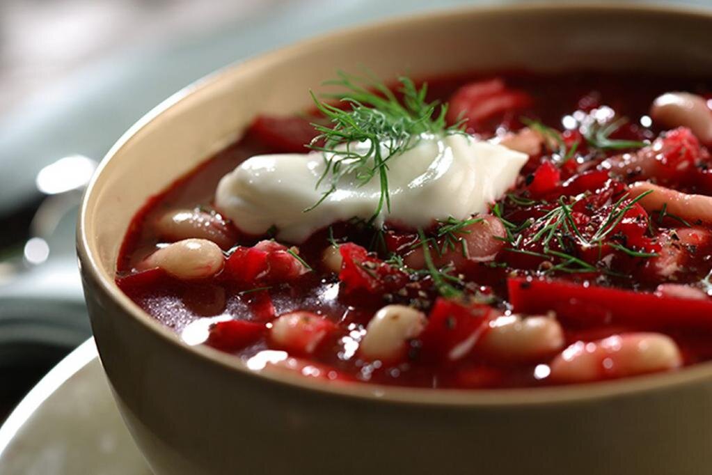 Красный борщ с консервированной фасолью и чесноком, без мяса. РЕЦЕПТ НА ПЕРЕДЕЛКУ Очень вкусный наваристый красный борщ, подходит для вегетарианцев, так как готовится без мяса, на растительном масле, с фасолью. Чтобы сэкономить время, фасоль я взяла консервированную в томате. Ингредиенты на 8 порций: Свекла - 600 г Лук репчатый - 200 г Капуста белокочанная - 400 г Картошка - 600 г Фасоль консервированная - 240 г Томатная паста - 2 ст. ложки Маринад - 4 ст. ложки Чеснок - 20 г Зелёный лук - 20 г Поваренная соль - 1 ст. ложки Растительное масло - 2 ст. ложки Вода - 3,5 л Пошаговое приготовление: 1. Пока в кастрюле греется вода на борщ, подготовим все необходимые ингредиенты: свеклу, картофель, чеснок и лук очистим и вымоем, отрежем около 400 г капусты от кочана, ополоснем ее, также ополоснем зеленые перья лука. 2. Свеклу нарежем небольшими брусочками. 3. Затем нарежем мелкими кубиками репчатый лук. 4. Свеклу с луком поместим в глубокую сковороду или сотейник, добавим растительное