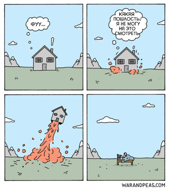 Например, популярная серия комиксов "War and Peas" от молодой пары из Германии - их комиксы содержат в себе вполне взрослый юмор, иногда даже уж слишком выходящий за рамки.