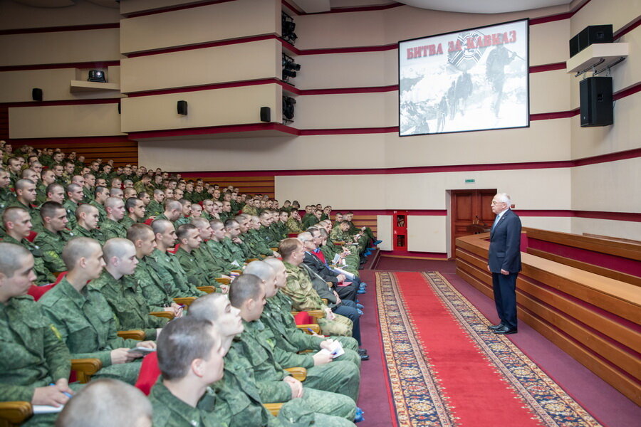 На встрече присутствовали и выступили перед личным составом председатель Общероссийской общественной организации ветеранов войск правопорядка генерал-лейтенант в отставке Пётр Ровенский, ветераны войск правопорядка генерал-майор в отставке Виктор Парфененко и полковник в отставке Владимир Звёздкин, а также старший научный сотрудник Центрального музея войск национальной гвардии Игорь Сандалов. Были сделаны доклады о роли войск НКВД в событиях 1942-1943 гг., также состоялся показ фильма «Битва за Кавказ» киностудии журнала «На боевом посту». «В период Северо-Кавказской наступательной операции военнослужащие войск НКВД проявляли массовый героизм, а разгром немецко-фашистских войск Красной Армией в битве за Кавказ был обеспечен, в том числе, умелыми действиями личного сост