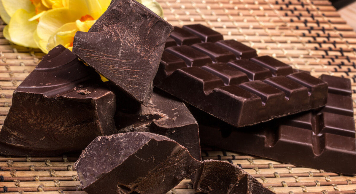 Темный шоколад Темный шоколад содержит много флавонидами и антиоксидантов, хорошо влияющих на кожу.
