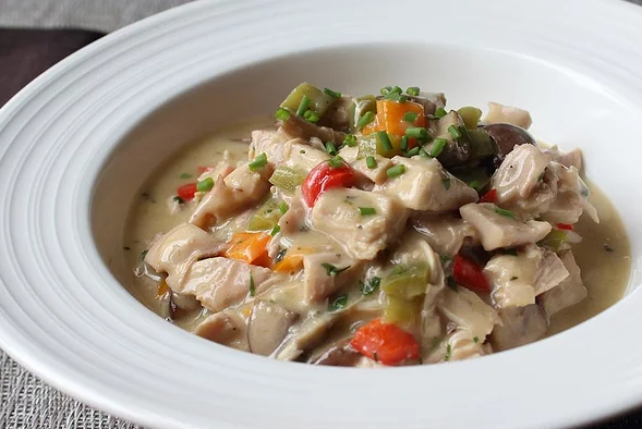 Курица по-королевски - один из моих любимых классических продуктов для комфорта. Этот рецепт легко адаптировать - вы можете сделать его толще или тоньше, изменив количество руса и имея небольшой запас под рукой. Обычно я делаю это с остатками от большой жареной курицы. Подавайте макароны, тосты, рис или картофельное пюре. Ингредиенты: Шаги приготовления: Примечания : Если вы предпочитаете курицу по-королевски на более толстой стороне, увеличьте количество муки в булочке с 1/3 до 1/2 чашки. В этом нет никакой замены сухому хересу, за исключением, возможно, небольшого всплеска мягкого, более сладкого уксуса. Этот рецепт дает 4 маленьких или 2 больших порции.